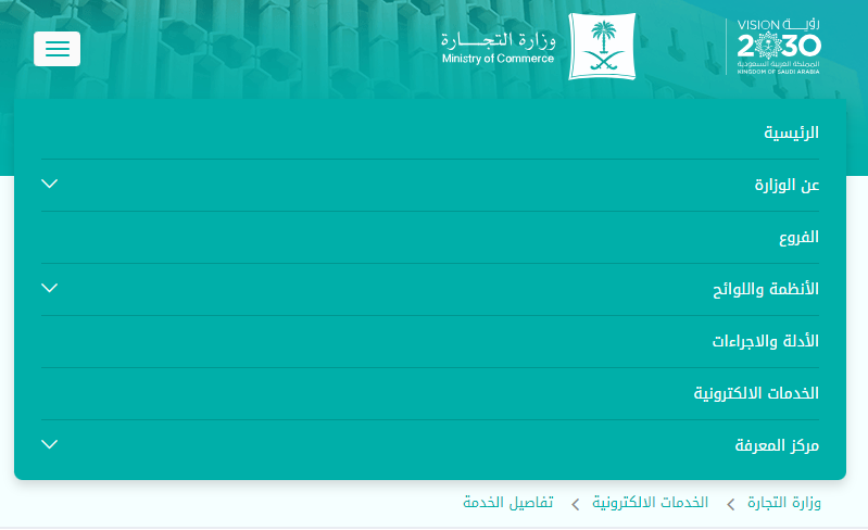 - الدخول على الموقع الإلكتروني الرسمي لوزارة التجارة والاستثمار.