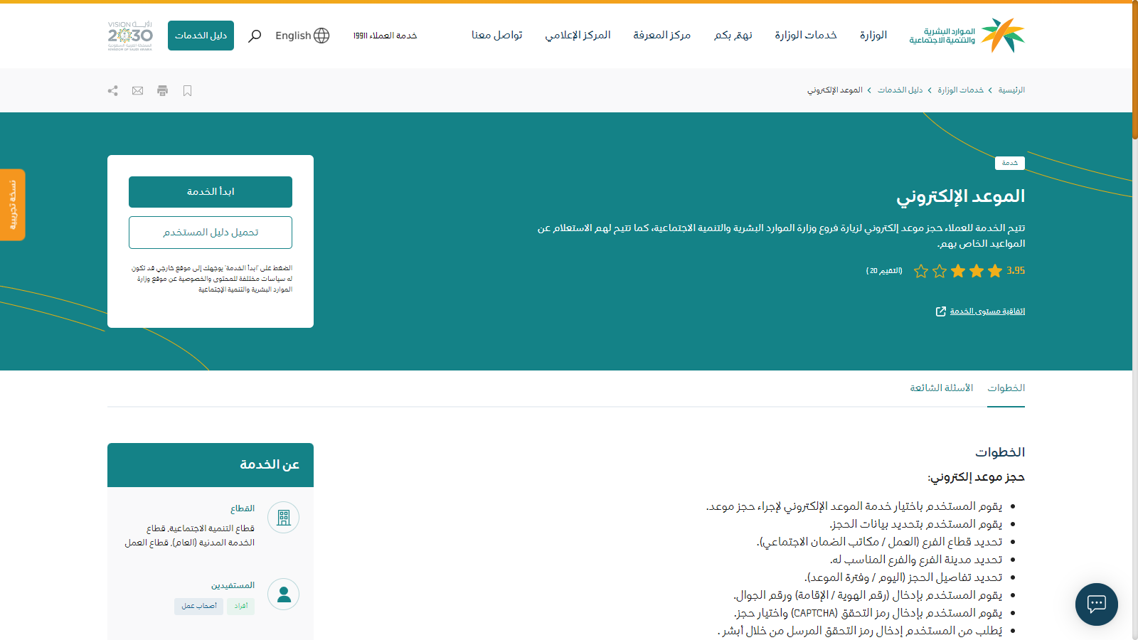 - من خدمات الوزارة يتم اختيار دليل الخدمات ومنه الانتقال للموعد الإلكتروني.