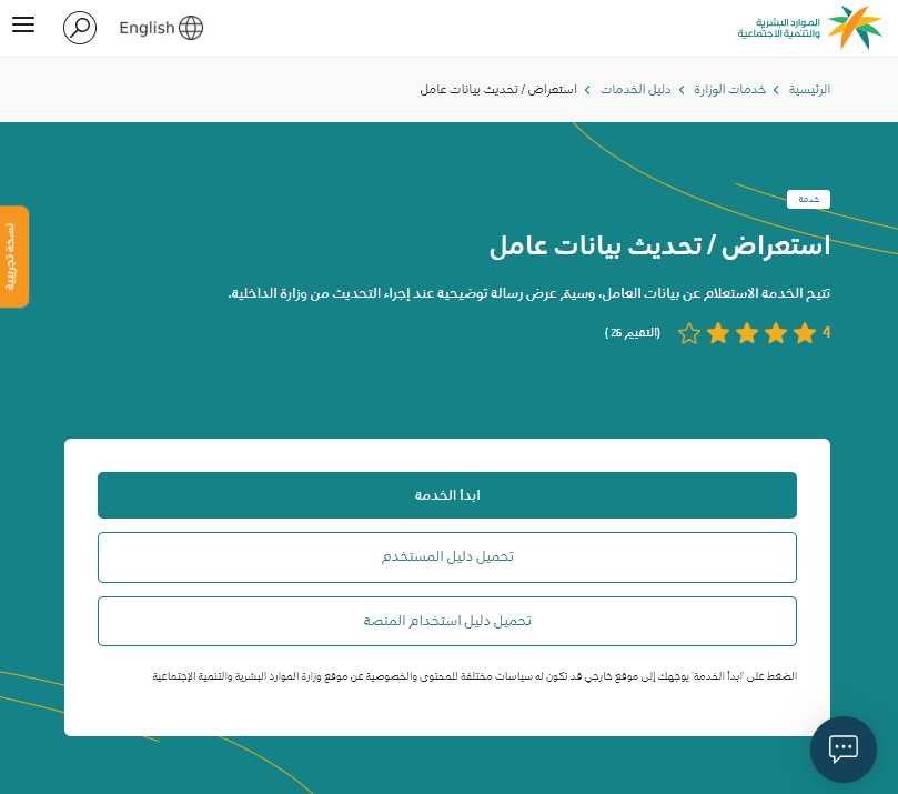 - اختر خدمة استعراض/ تحديث بيانات عامل.
