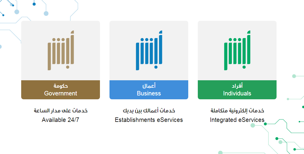 - الوصول بشكل مباشر إلى منصة أبشر، ومنها يتم الدخول إلى خيار أبشر للأفراد.