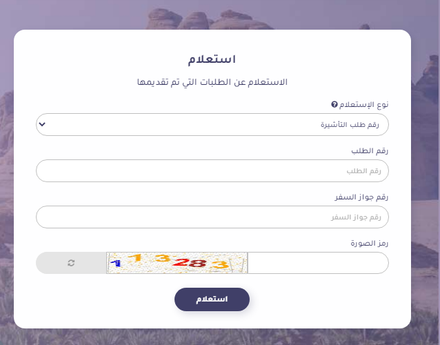 - سجل بيانات الاستعلام (رقم الطلب، ورقم جواز السفر، أو رقم الهوية).