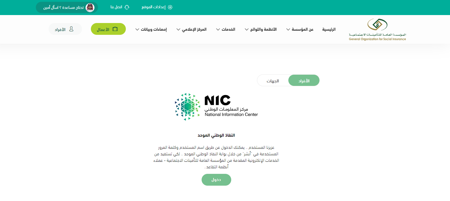 - الدخول للموقع الرسمي لهيئة التأمينات الاجتماعية من هنا.