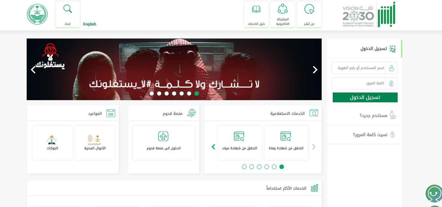 - الدخول للموقع الرسمي لمنصة أبشر.