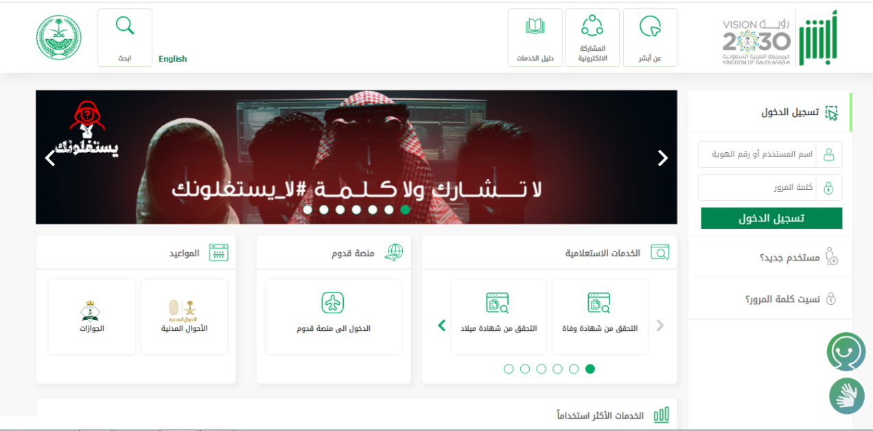 - التسجيل يكون بصورة إلكترونية عبر أبشر.