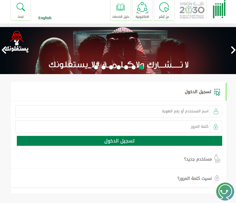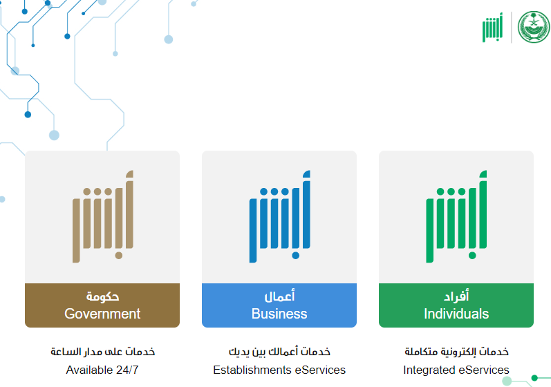 - الدخول إلى الموقع الإلكتروني الرسمي لمنصة أبشر.