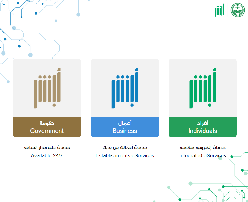 - انتقل إلى منصة أبشر الإلكترونية.