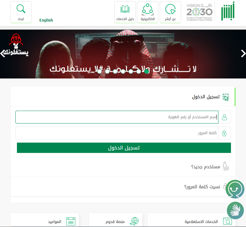 - الانتقال إلى منصة أبشر.