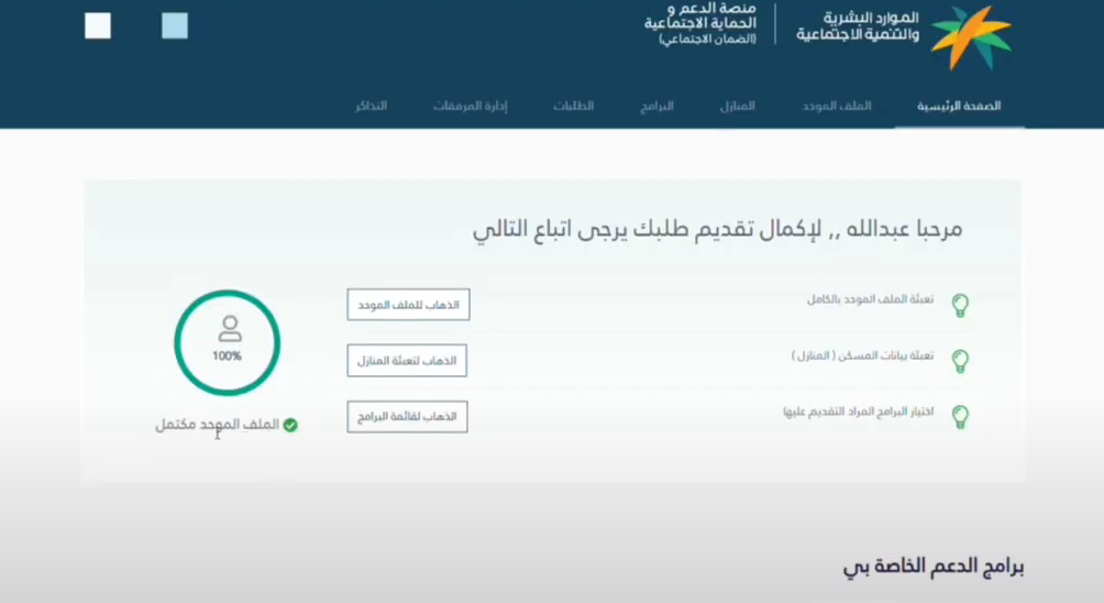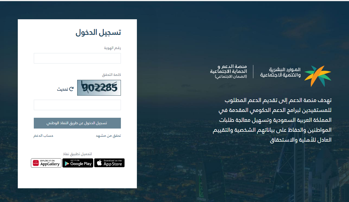 - فتح موقع منصة الدعم والحماية الاجتماعية.