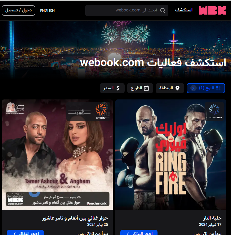 لتتمكن من شراء تذاكر مباراة النصر وانتر ميامي عبر منصة وي بوك عليك اتباع الخطوات التالية: