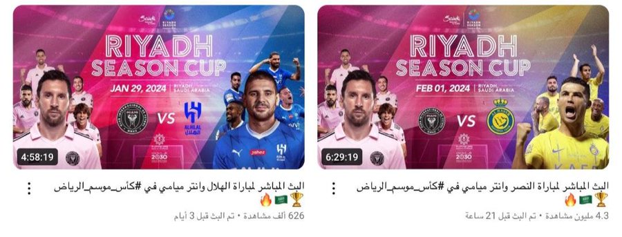 متناسيًا أن هذه الزيادة الرهيبة قد تكون عائدة إلى أن في فريق النصر اللاعب البرتغالي رونالدو والذي له تاريخ طويل مع أبرز لاعبي إنتر ميامي ميسي مما يجعل اللقاء بين النصر وأنتر ميامي محور اهتمام فئات قد لا تتابع كرة القدم السعودية أساسًا.