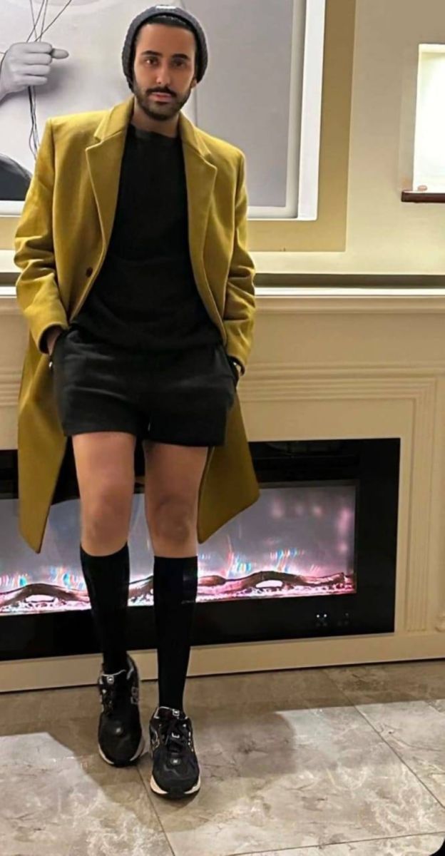 وقد كان قد نشر مجموعة من اللقطات له على حسابه الخاص في سناب شات إذ كان يرتدي بنطال قصير أسود كالتنورة فوق الركبة وجوارب طويلة مع بالطو مفتوح من الأمام بلون المستردة.