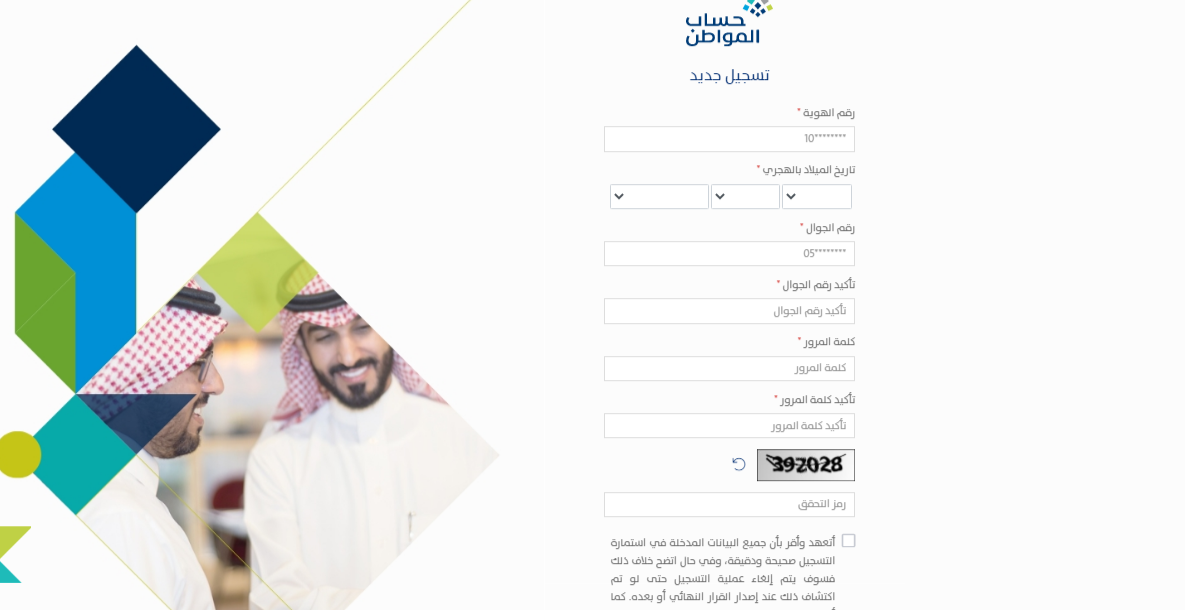 - تسجيل رقم الهوية، تاريخ الميلاد الهجري ورقم الجوال.