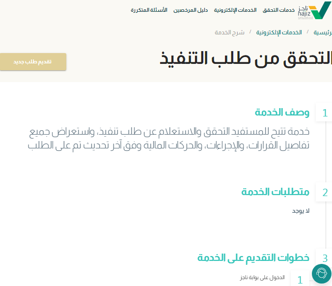 - قم باختيار خدمة استعلام عن طلب تنفيذ.