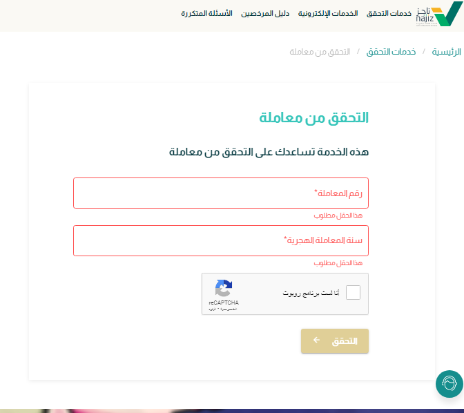 - اضغط على استخدام الخدمة من التحقق من معاملة.