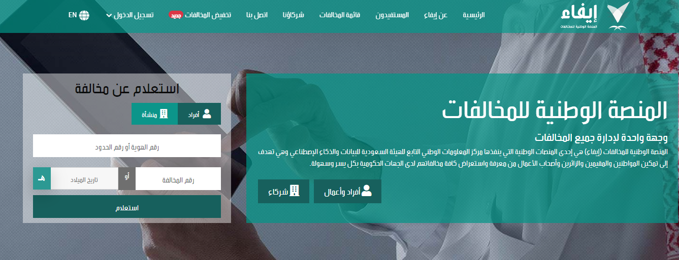 - تسجيل تاريخ الميلاد لصاحب الحساب أو رقم المخالفة.