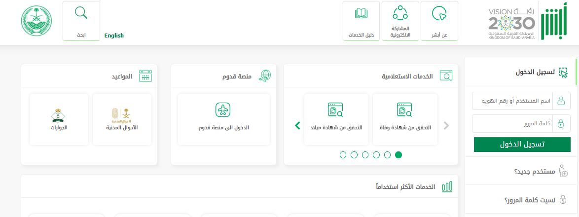 - يقوم المستعلم بفتح الصفحة الرسمية أبشر.