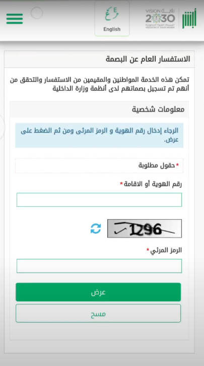 - اختيار الاستعلام العام عن البصمة.