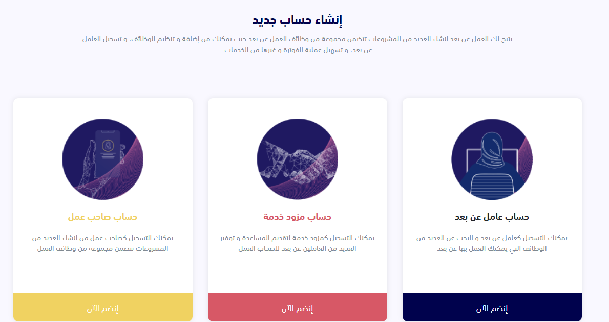 - لا بد من إنشاء حساب على بوابة العمل عن بعد حتى يتم من خلال التقديم على الوظائف.