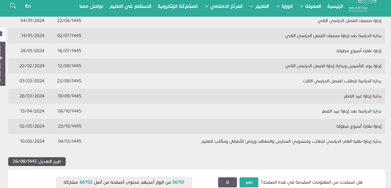 موعد نهاية الفصل الدراسي الثالث بالهجري