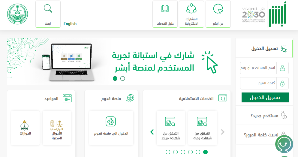 - الدخول إلى منصة أبشر الإلكترونية "من هنا".