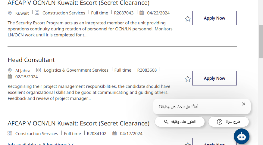 KBR من ضمن الشركات التي تقوم بتوفير مهن شاغرة رائعة يتم الحصول عليها بكل سلاسة، ولكن ينبغي على الفرد استيفاء جميع شروط التقديم على فرص عمل KBR الكويت: