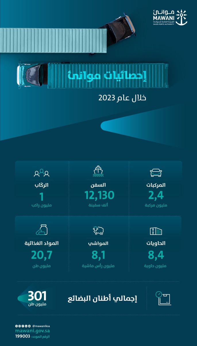 فيما تمكنت موانئ المملكة من التعامل مع 2 مليون حاوية، تُمثل نموًا هائلاً بنسبة 17.57٪.