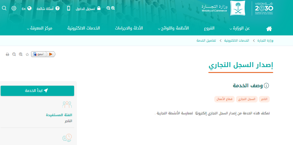 - قم بالدخول إلى الخدمة مباشرةً من منصة وزارة التجارة.