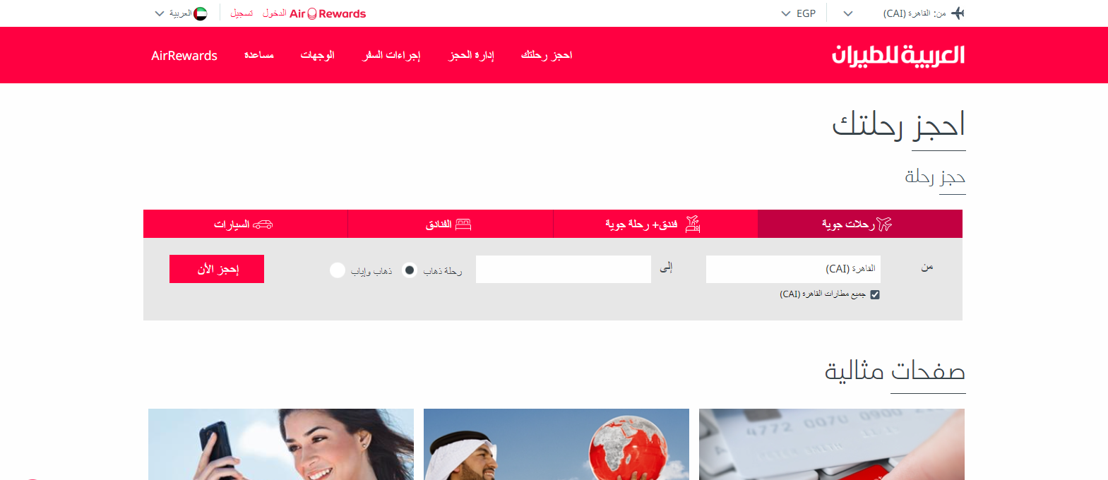 - الدخول إلى الموقع الرسمي الخاص بشركة العربية للطيران، من هنا.
