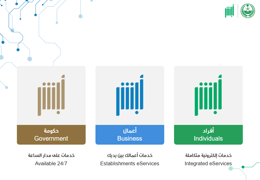 - قم بالتوجه إلى منصة أبشر الإلكترونية "من هنا".