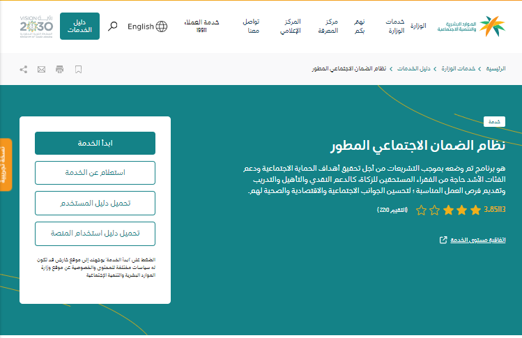- الدخول إلى الموقع الرسمي للضمان الاجتماعي المطور.