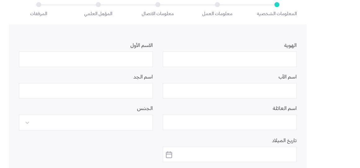 - انقر على زر تقديم، سيطلب منك إدخال مجموعة من البيانات الشخصية من هذه البيانات الآتي ذكرها ( رقم بطاقة الهوية الوطنية – الاسم الأول – اسم الأب – اسم الجد – تاريخ الميلاد – رقم الهاتف – البريد الإلكتروني – شهادة التخرج - كود التحقق).