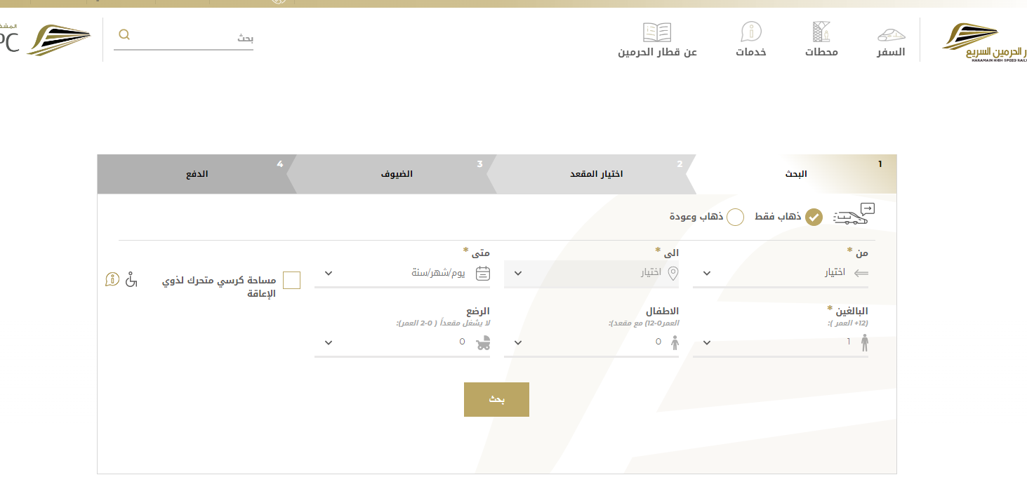 - الولوج إلى الموقع الإلكتروني الرسمي الخاص بحجز قطار الحرمين " من هنا ".