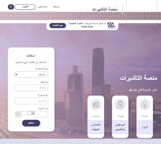 - الدخول إلى منصة التأشيرات الإلكترونية بالمملكة.
