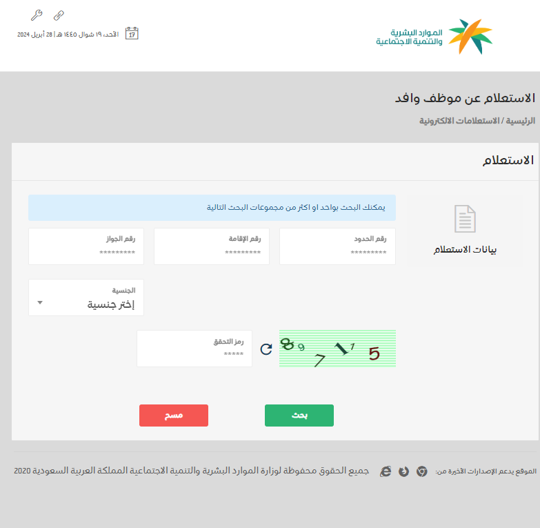 يمكنك الاستعلام عن عامل وافد من خلال الموقع الإلكتروني الخاص بوزارة الموارد البشرية بالمملكة العربية السعودية، وسوف نوضح ذلك فيما يلي:
