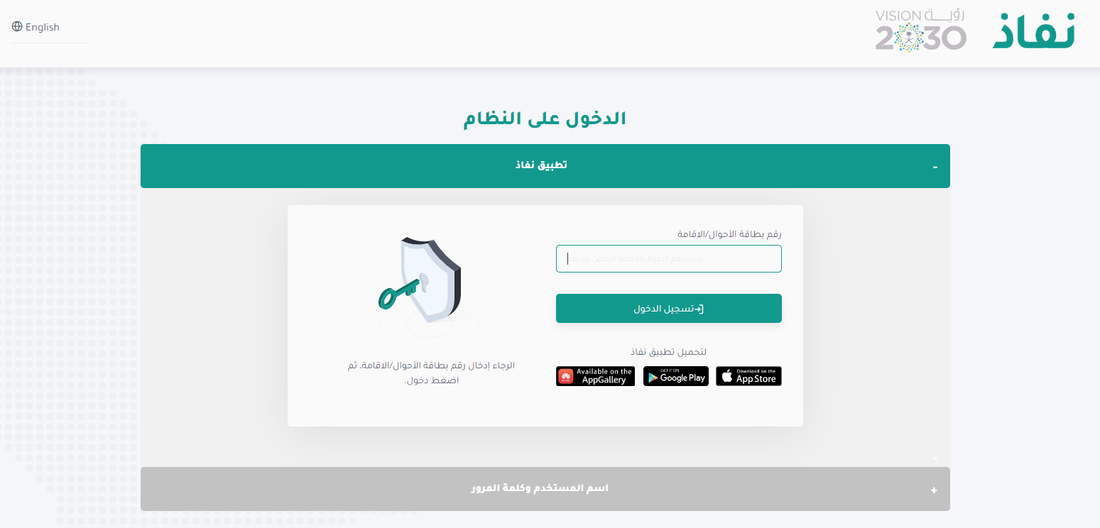 - تسجيل الدخول في بوابة النفاذ الوطني.