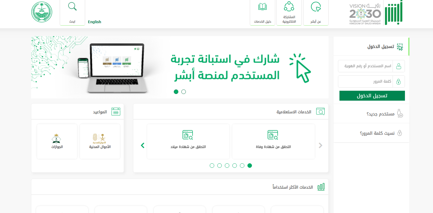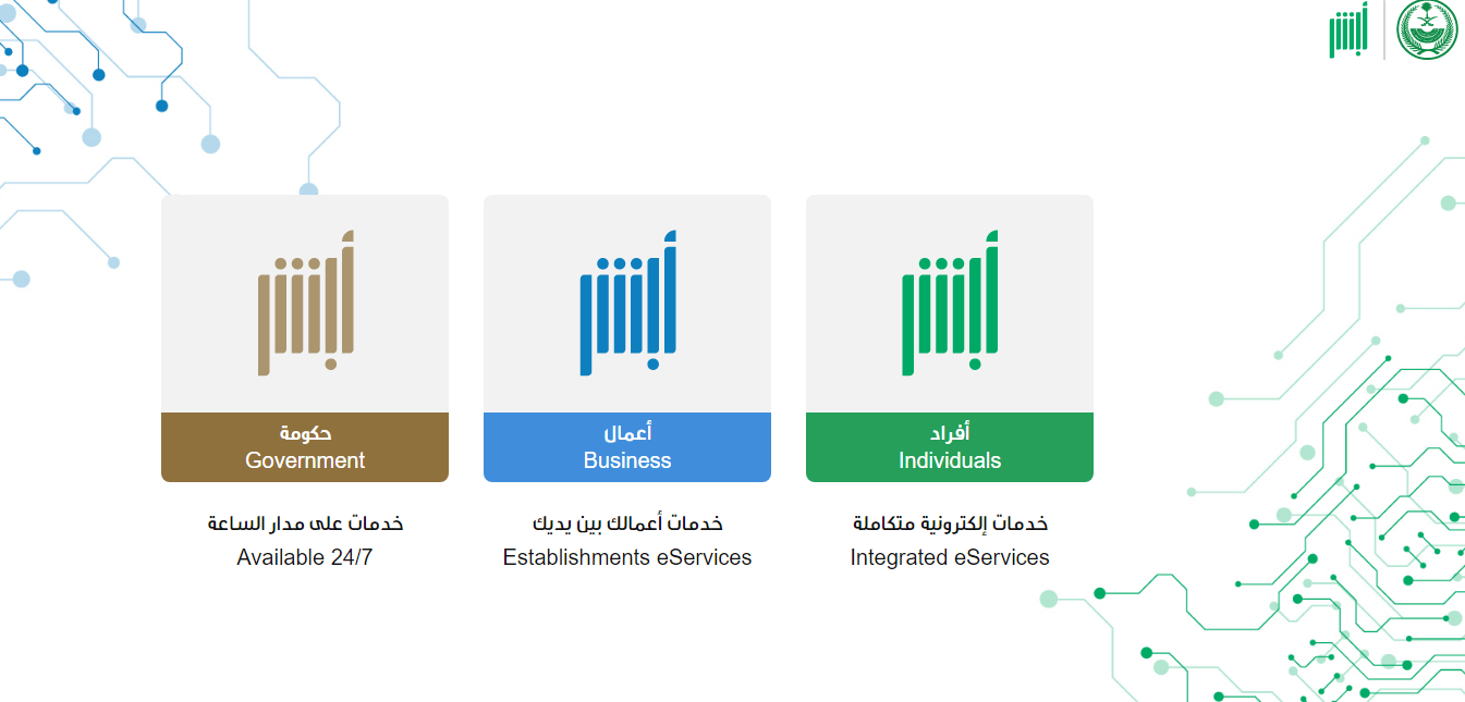 - الذهاب إلى الموقع الإلكتروني الرسمي لمنصة أبشر " من هنا ".