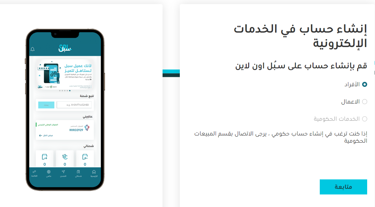 - اختيار الفئة التابع لها المستخدم وهي الأفراد ثم النقر على متابعة.