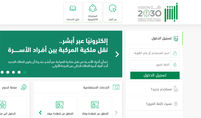 - اذهب إلى الموقع الإلكتروني الرسمي أبشر.