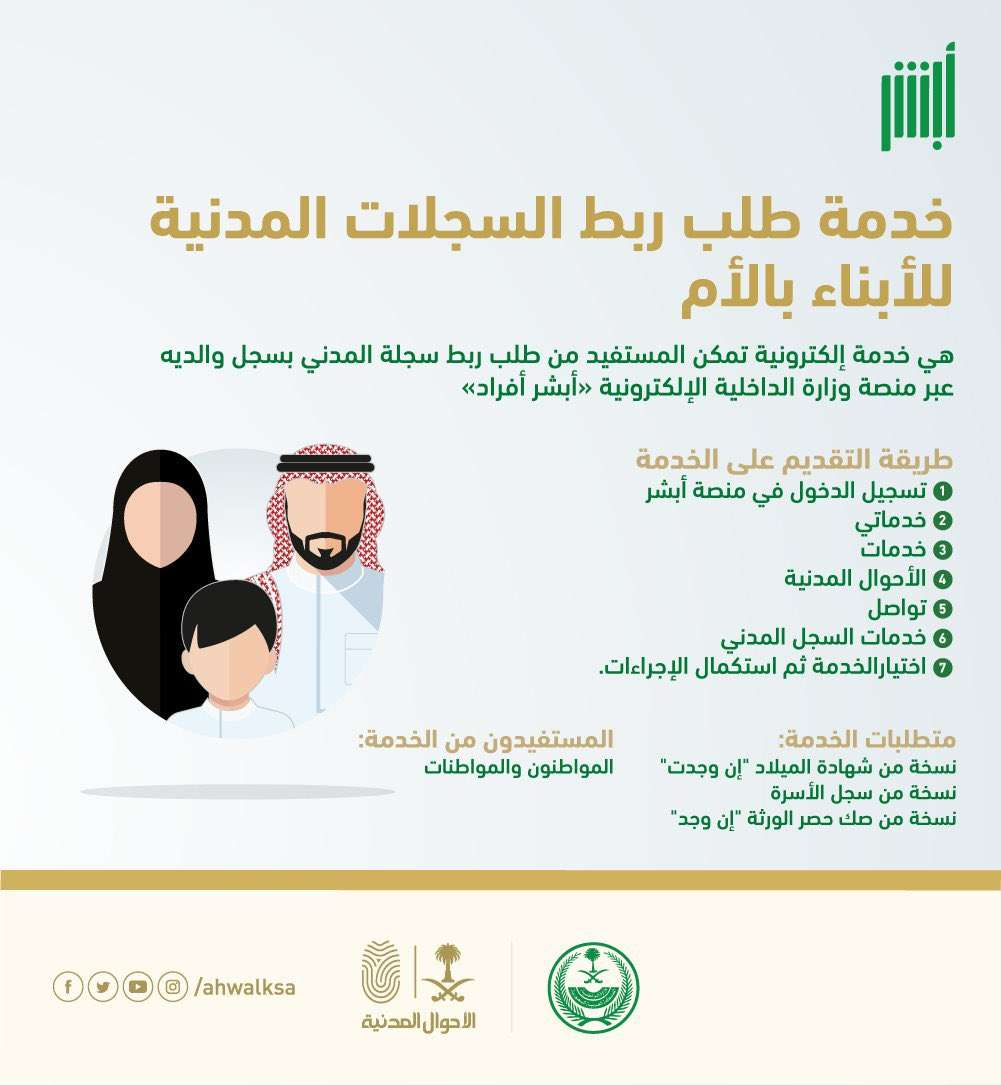 استعلم من هُُنــا “absher.sa”ربط سجلات الأبناء بالأم