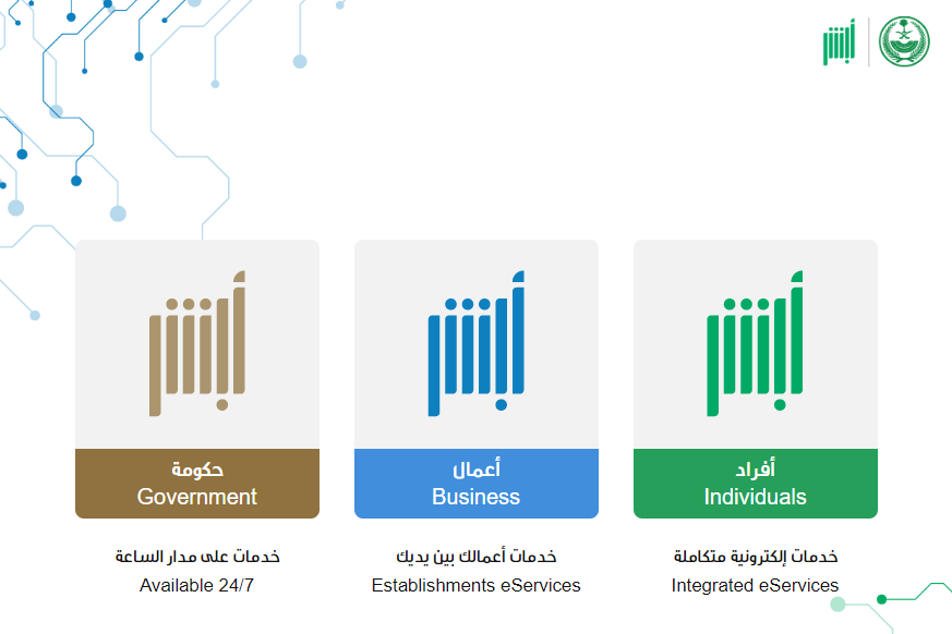 - قم بالتوجه إلى منصة أبشر الإلكترونية التابعة لوزارة الداخلية "من هنا".