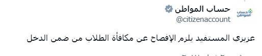قد أعلنت خدمة المستفيدين عن ضرورة الإفصاح عن مكافأة الطلاب من ضمن مصادر الدخل في حساب المواطن ولكنها لا تؤثر على الدعم بأي شكل من الأشكال.