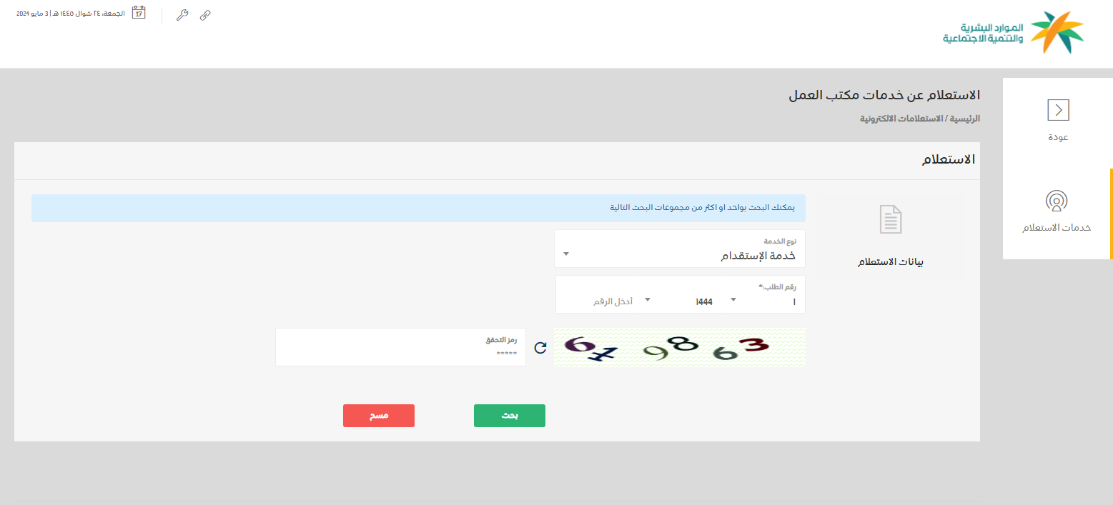 - بعد الانتهاء من تدوين البيانات المطلوبة، اضغط على تبويب بحث.