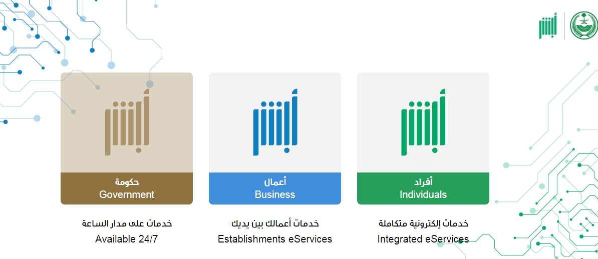 - قم بتسجيل الدخول إلى حسابك عبر أبشر، أو بتسجيل جديد.