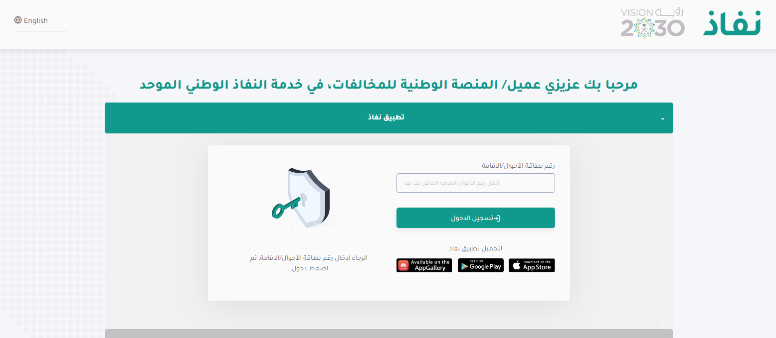 - تسجيل الدخول إلى المنصة عبر بوابة النفاذ الوطني الموحد، وإدخال رقم الأحوال المدنية أو رقم الإقامة.