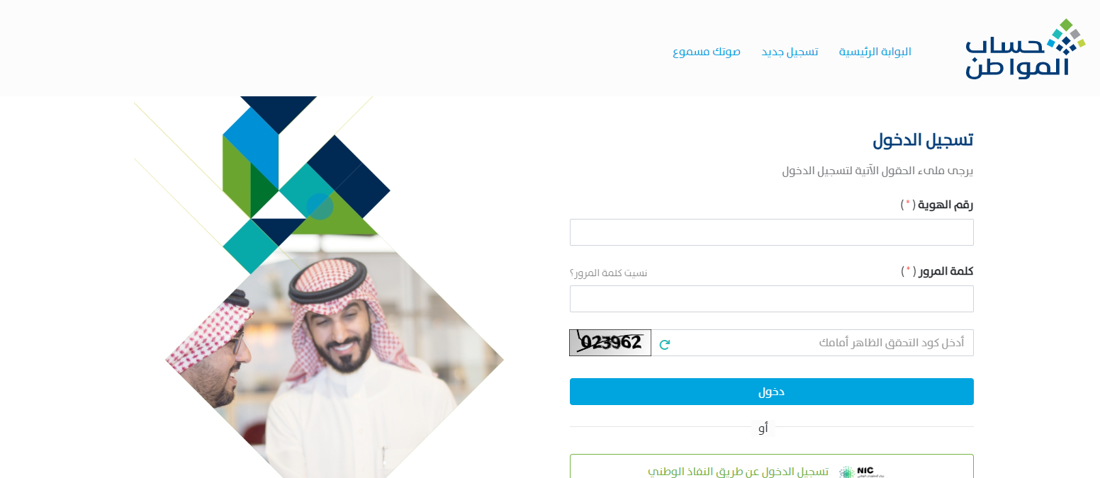 - أو تسجيل الدخول عبر بوابة النفاذ الوطني الموحد.