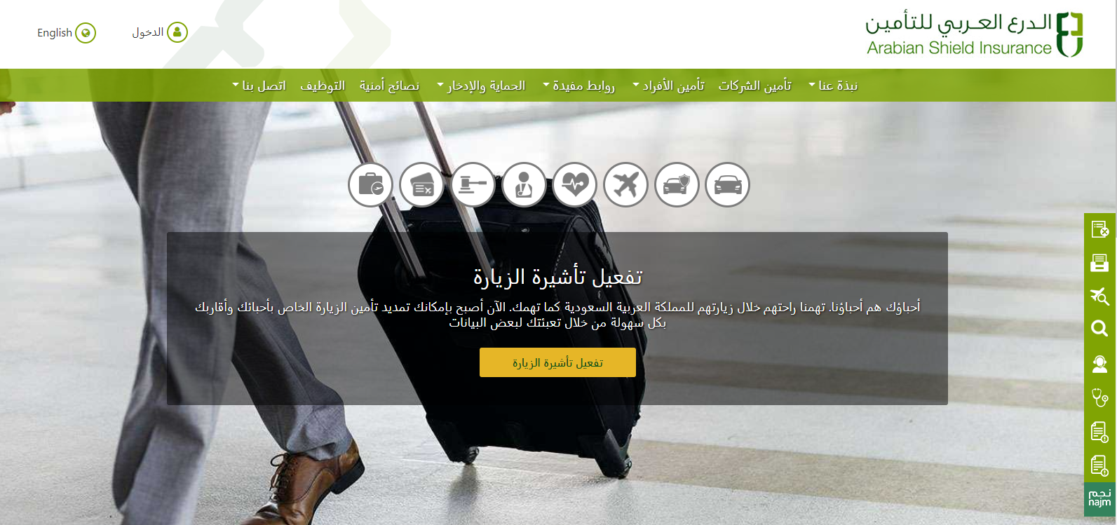 يمكن أن يتم الاشتراك في برنامج تأمين الدرع العربي في السعودية بطريقة إلكترونية من خلال اتباع الخطوات التالية: