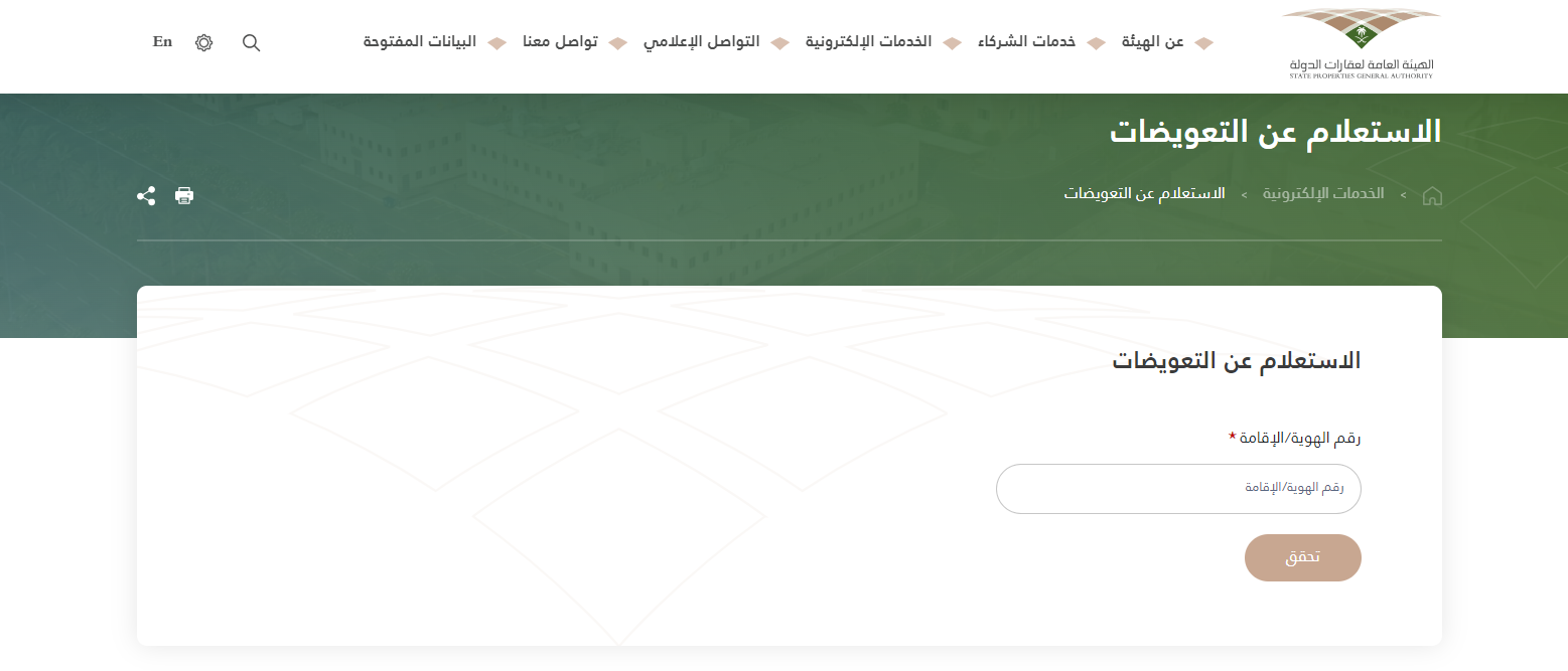 يتم الاستعلام عن التعويضات المستحقة عبر موقع الهيئة العامة لعقارات الدولة برقم الهوية، ونوضح لكم عبر النقاط التالية طريقة الاستعلام عن التعويضات بالخطوات: