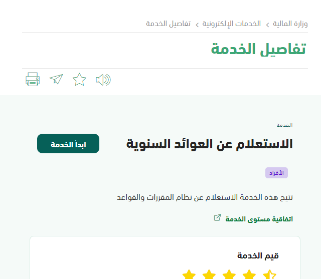 - انقر فوق خدمة الاستعلام عن العوائد السنوية.