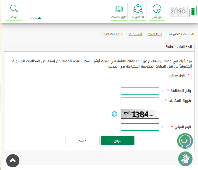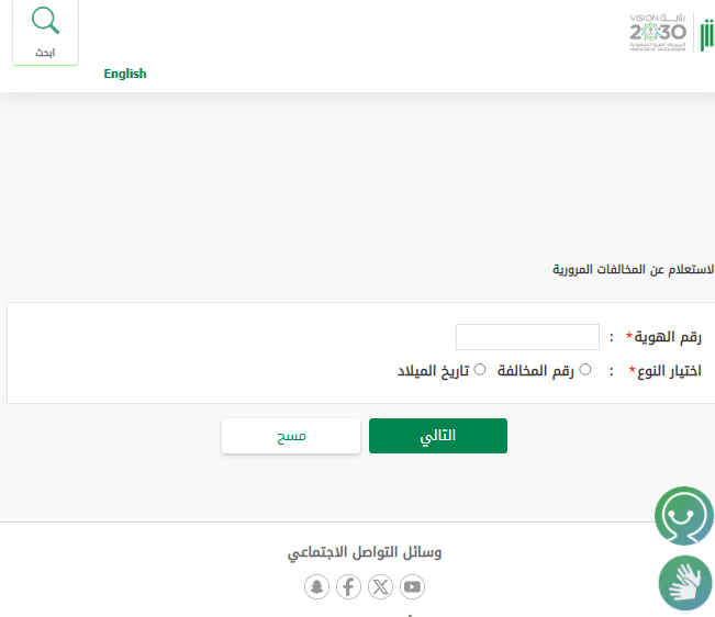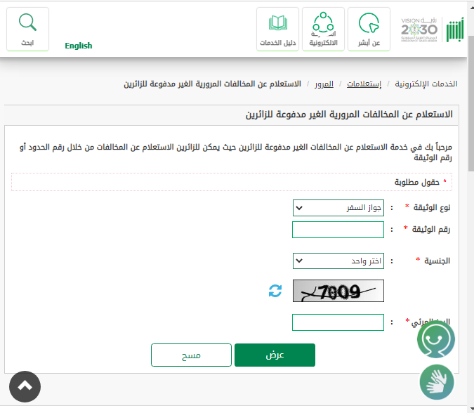 التأكد من تسجيل مخالفة مرورية على الزائر بالمملكة