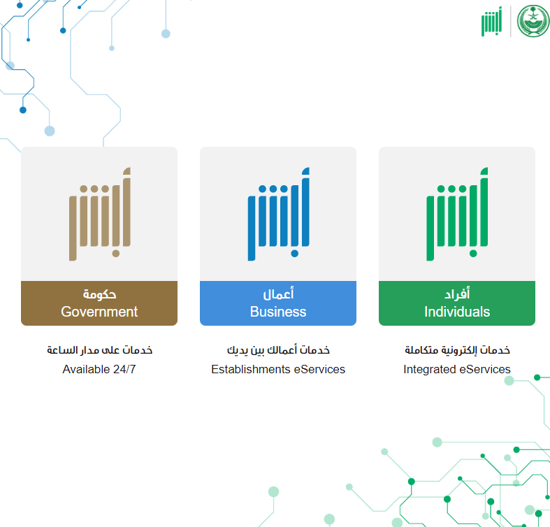 - قم بالدخول على الموقع الإلكتروني الخاص بمنصة أبشر.